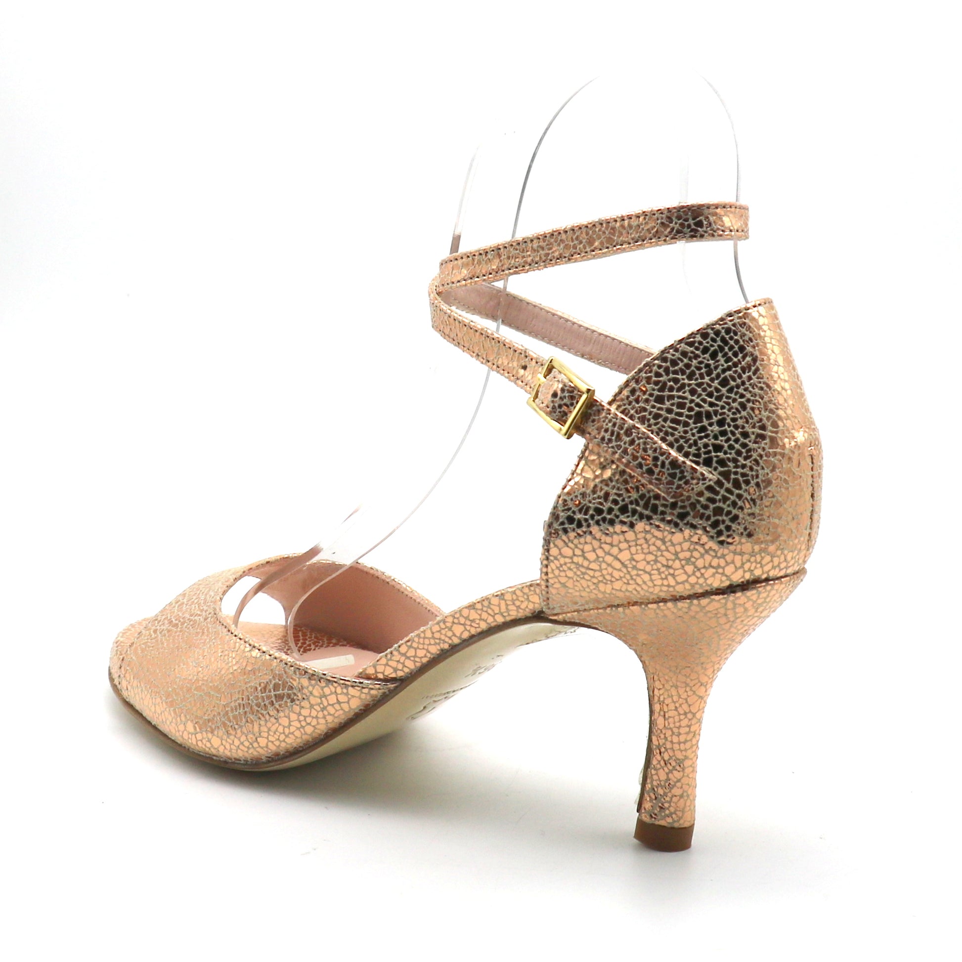 Closed back with long strap, lacing possible around the ankle or around the instep