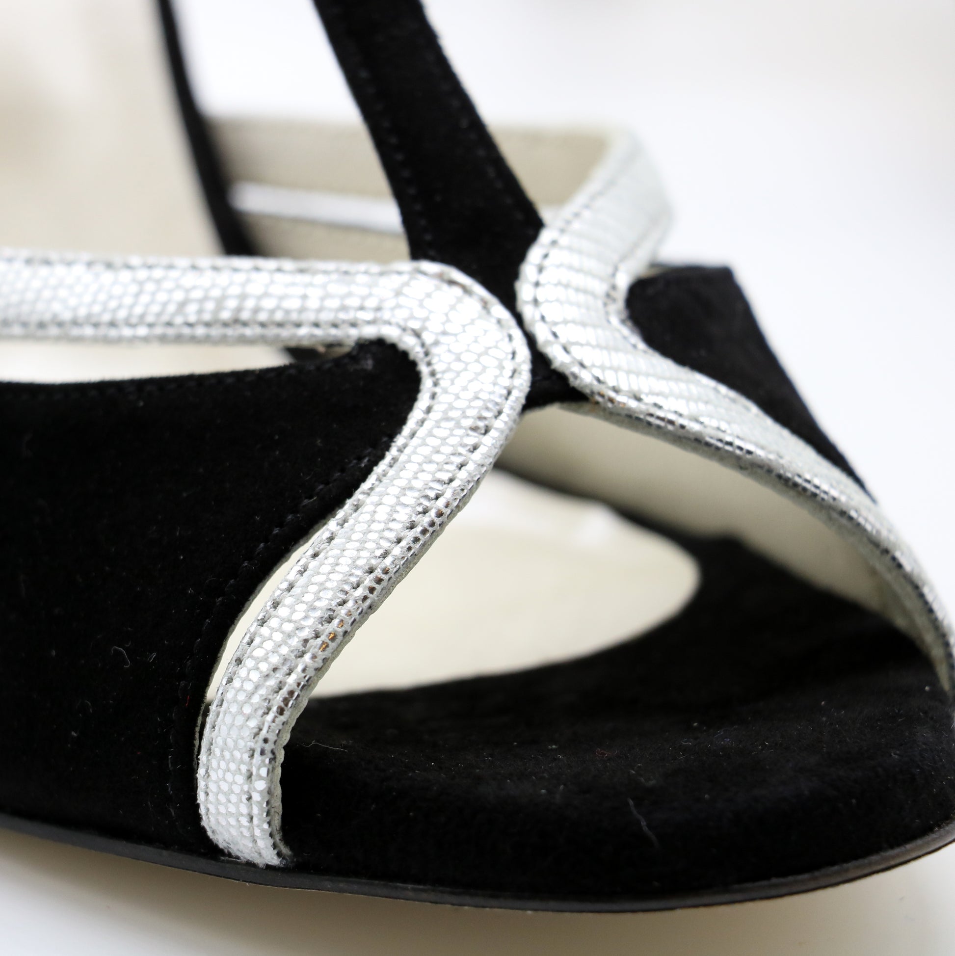 Black "suede" (suede) enhanced with a snake-like silver leather