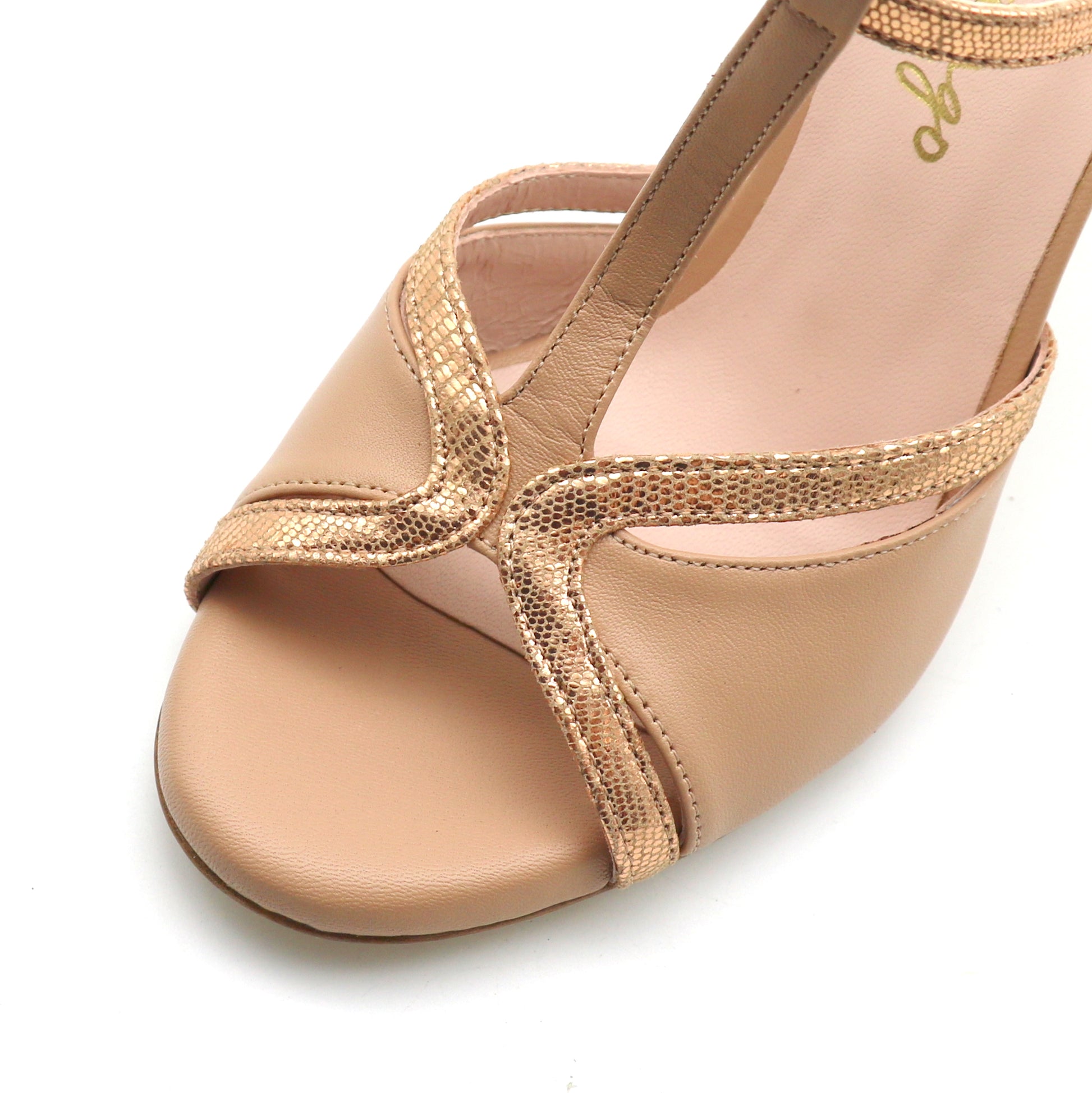 Cuir lisse nude, contraste cuir brillant