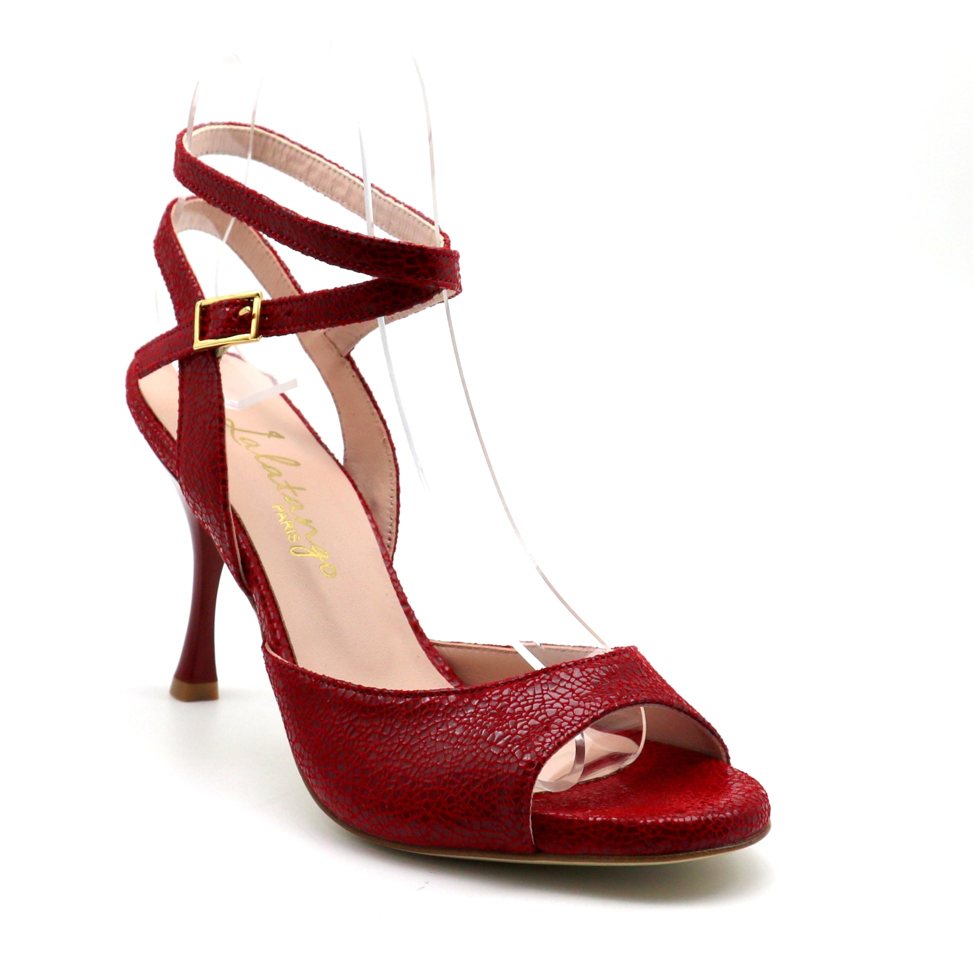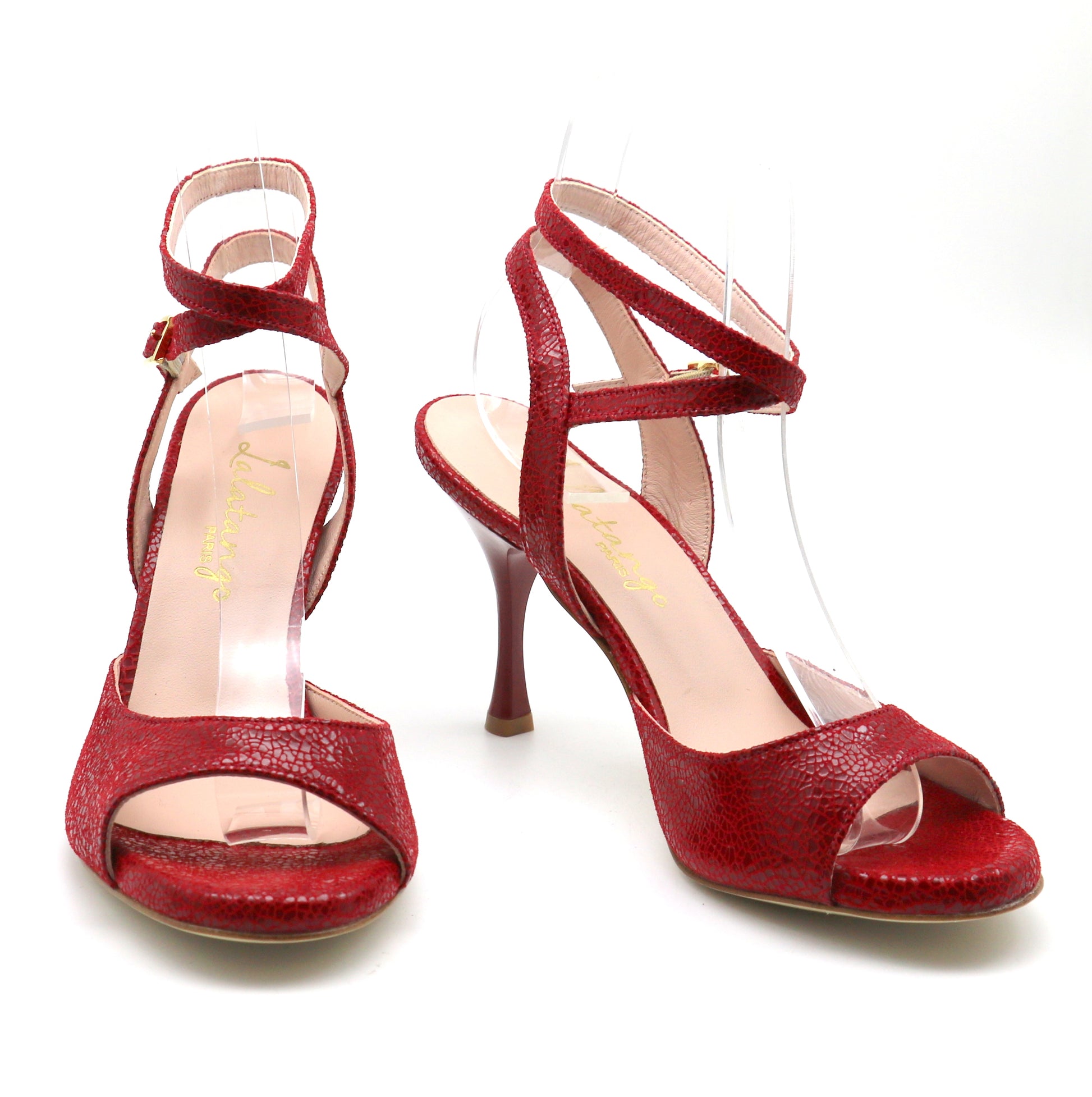 Sentimental rouge brillant façon verre brisé talons laqués 8cm