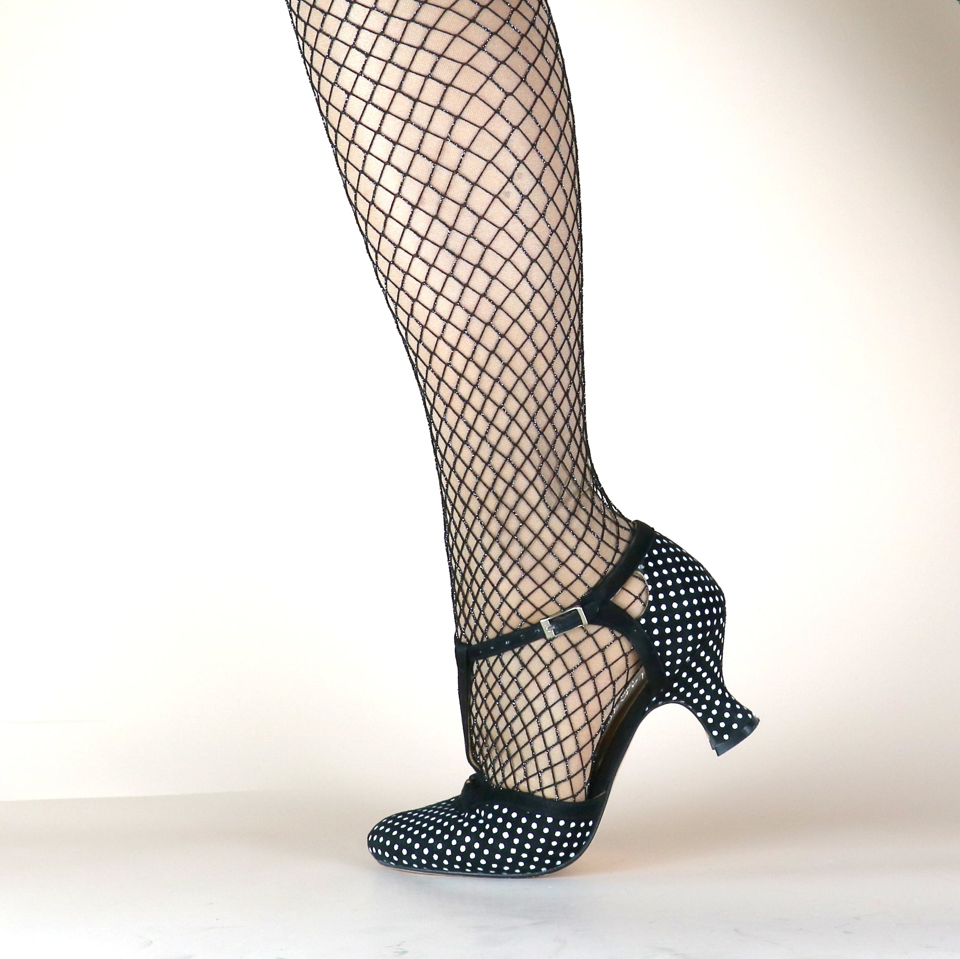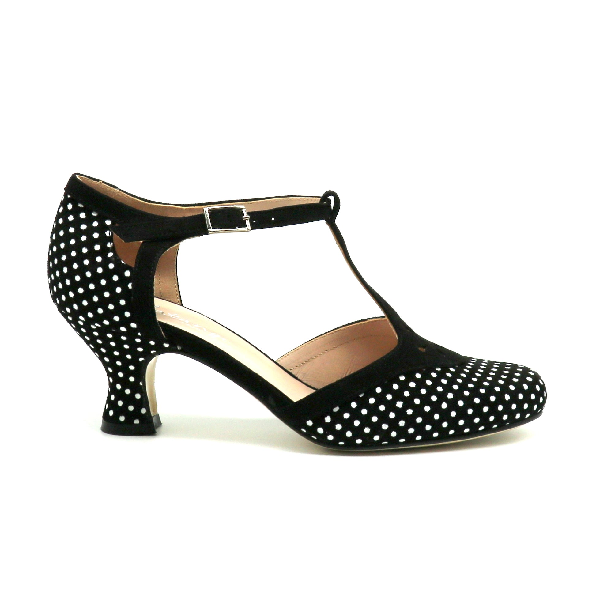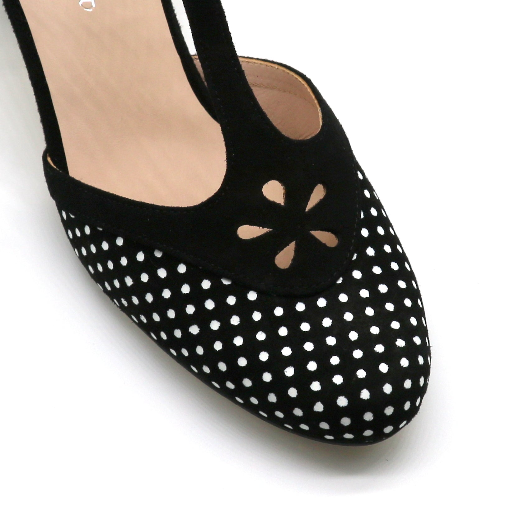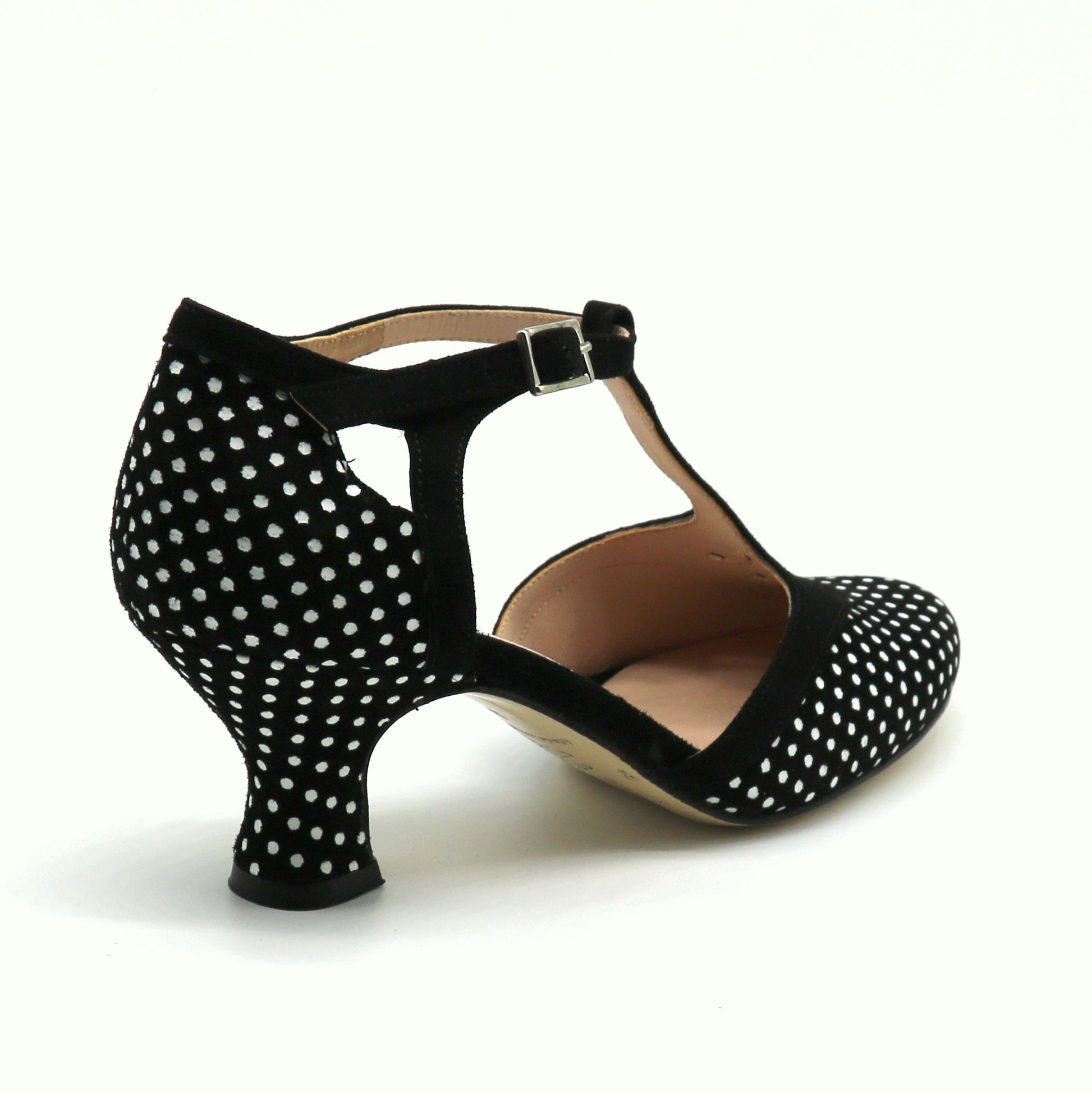 Magnifique cuir velours ("daim") noir imprimé pois blancs, contraste en cuir velours ("daim") noir